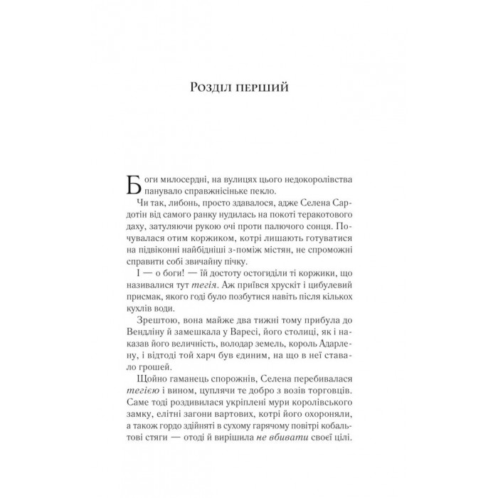 Селена Сардотін постає з попелу, щоб сяяти яскравіше, ніж раніше. Селена пережила смертельні змагання, втрату найближчих і розбите серце, але втрималася на рівних. Утім вона далі платить за це дорогу ціну й цього разу вирушає до нових земель, щоб віч-на-віч стикнутися там із найтемнішою правдою… Правдою про свою спадщину, яка може назавжди змінити її життя — і майбутнє.