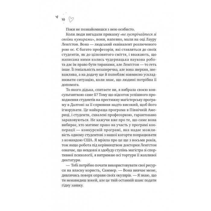 Тим часом необачна помилка капітана хокейної команди Ейдена Кроуфорда ставить під загрозу весь сезон. Тому тренер придумує для нього справжнє покарання: хлопець стане головним об’єктом дослідження Саммер. Це — останнє, що він хотів би робити, тим паче що дослідниця неначе готова пожбурити в нього ковзанами. Та й сам Ейден цілковито підтверджує найгірші припущення Саммер про хокеїстів — думає лише про гру, запальний, безцеремонний.